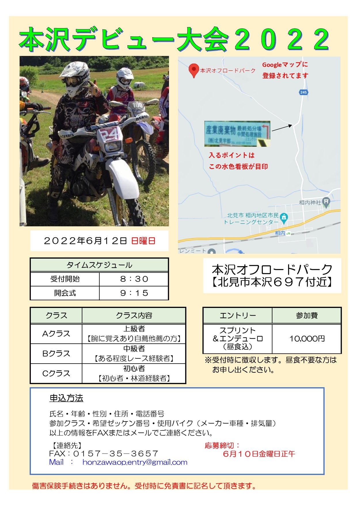 ■2022年のサドルバックエンデューロとモトクロスイベント・バトルクリークブローの日程が発表されました。エンデューロは第2戦と第3戦が水曜日、第1戦と第4戦とモトクロスが日曜日の開催です。エンデューロではプチスプリントも開催、モトクロスの詳細は後日発表。参加するにはEZOモトクラブの保険加入が必要。詳しくはサドルバックのwebサイトをご覧ください。